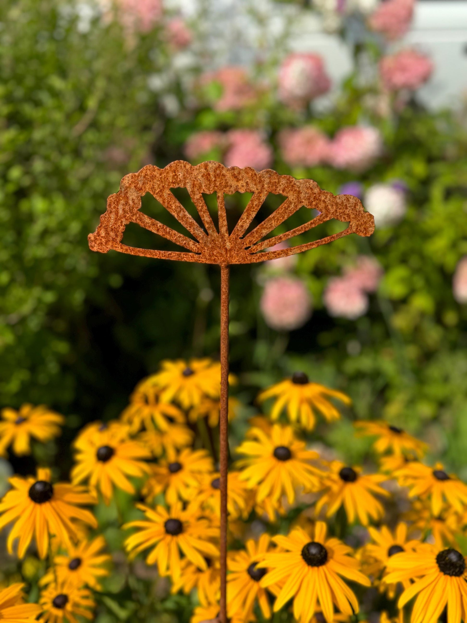 Add a new dimension and interest to your garden with our attractive rusty steel cow parsley garden spike decoration. The mild steel is designed to weather naturally out in the elements, the beautiful rusty colours and textures will bring a truly organic feel to your planters, flower beds and borders. This item is hand finished, so may differ slightly from the photograph.