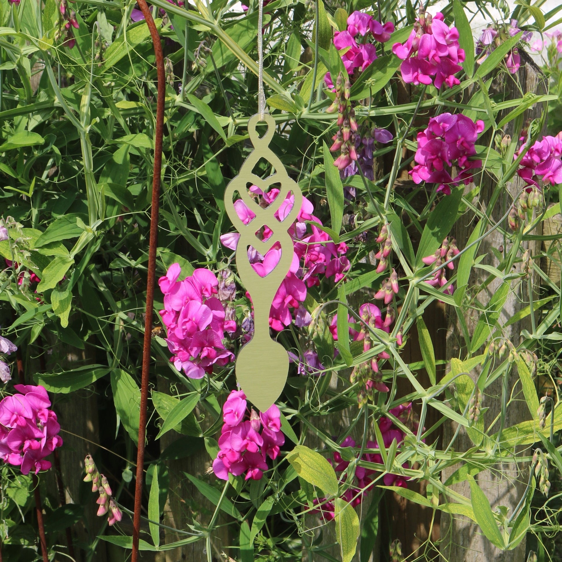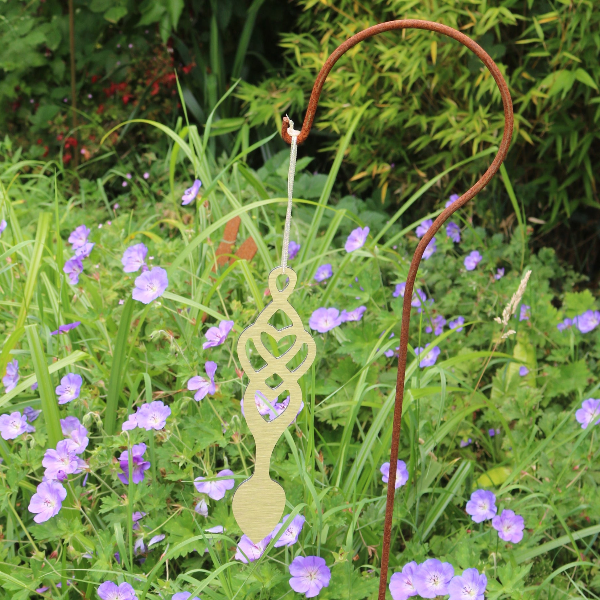 Our gold brushed aluminium composite 2D love spoon is our version of the traditional Welsh love spoon carved out of wood. It is a traditional craft dating back to the seventeenth century where lovers would carve symbols to display their feelings of love. Today love spoons are given as gestures of love or friendship to celebrate any special event.