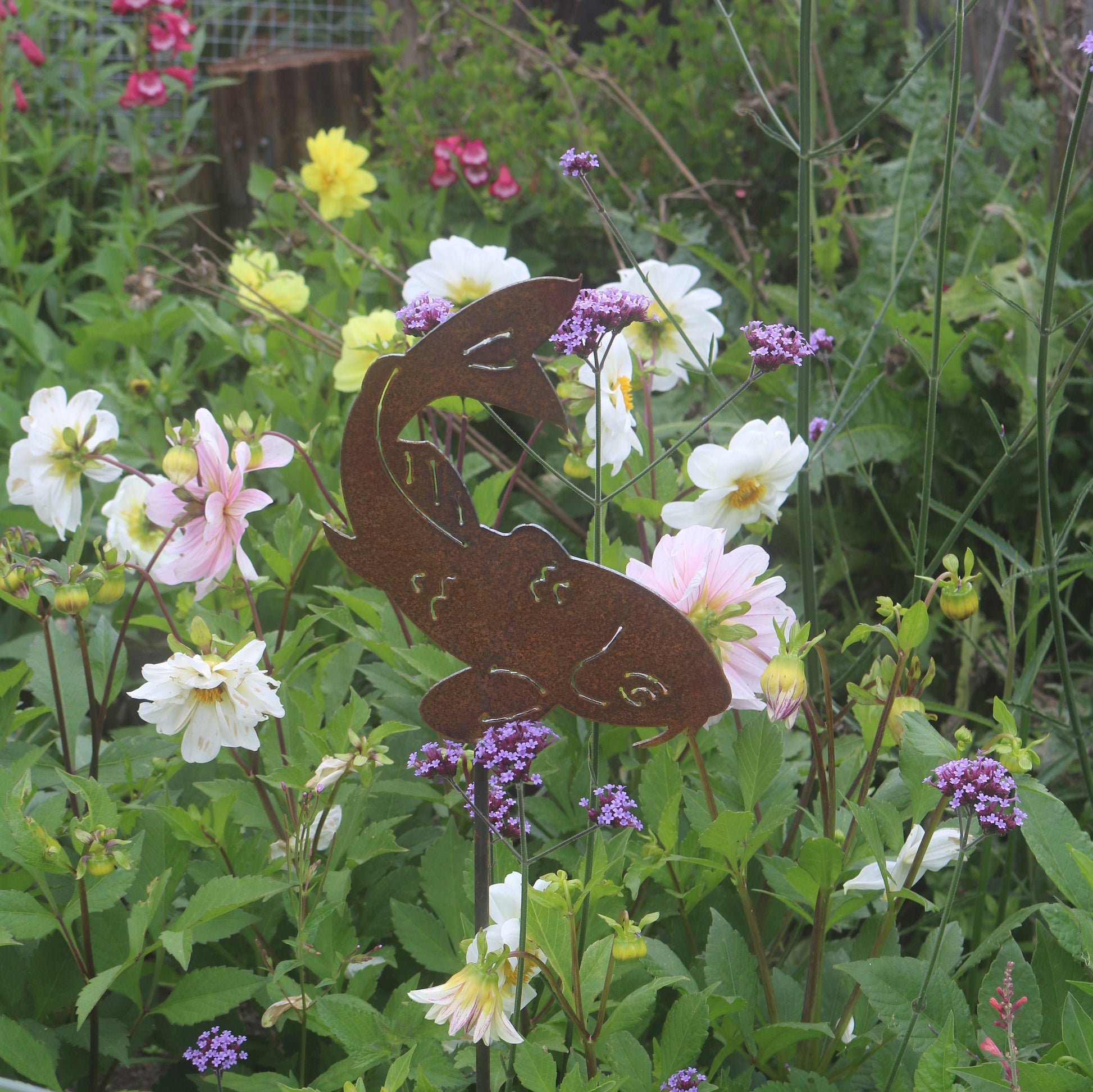 Add a new dimension and all year round interest to your garden or pond with our attractive rusty steel koi carp garden decoration. The mild steel is designed to weather naturally out in the elements, the beautiful rusty colours and textures will bring a truly organic feel to your planters, flower beds and borders. This item is hand finished so may vary slightly from the photograph.