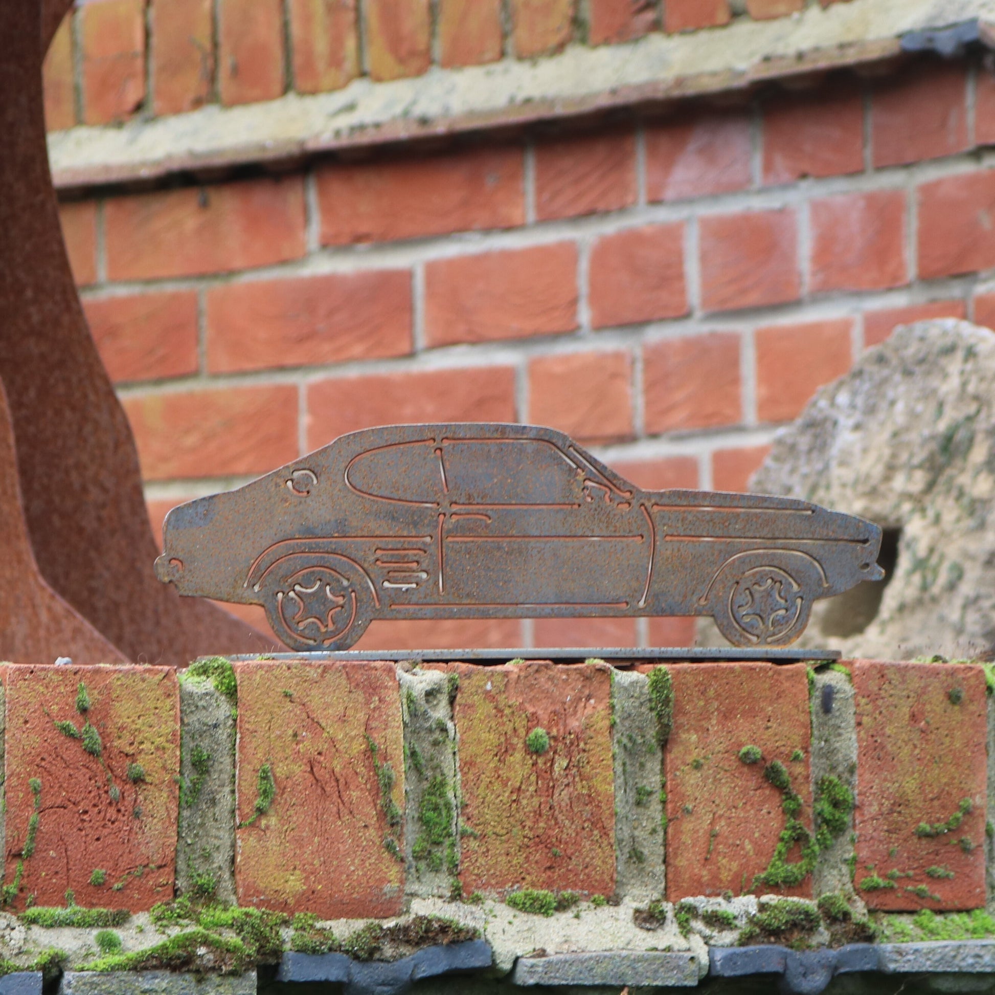 Rusty metal Ford Capri garden decoration, Ford Capri gift, Classic car gift. The mild steel is designed to weather naturally out in the elements. It is also a fabulous rustic ornament for the home. This item is hand finished, so may differ slightly from the photograph.