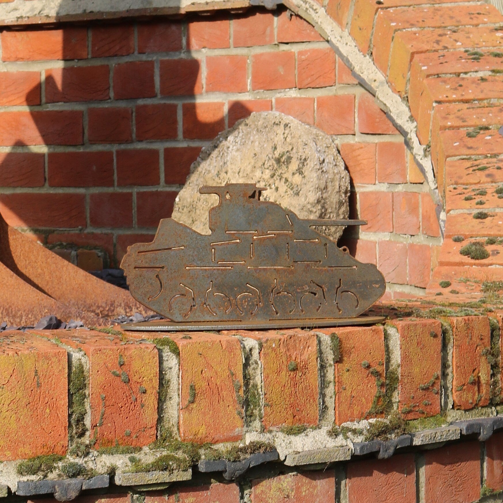 The American Sherman tank. The mild steel is designed to weather naturally out in the elements, the beautiful rusty colours and textures will bring a truly organic feel to your planters, flower beds and borders. It is also a fabulous rustic ornament for the home.