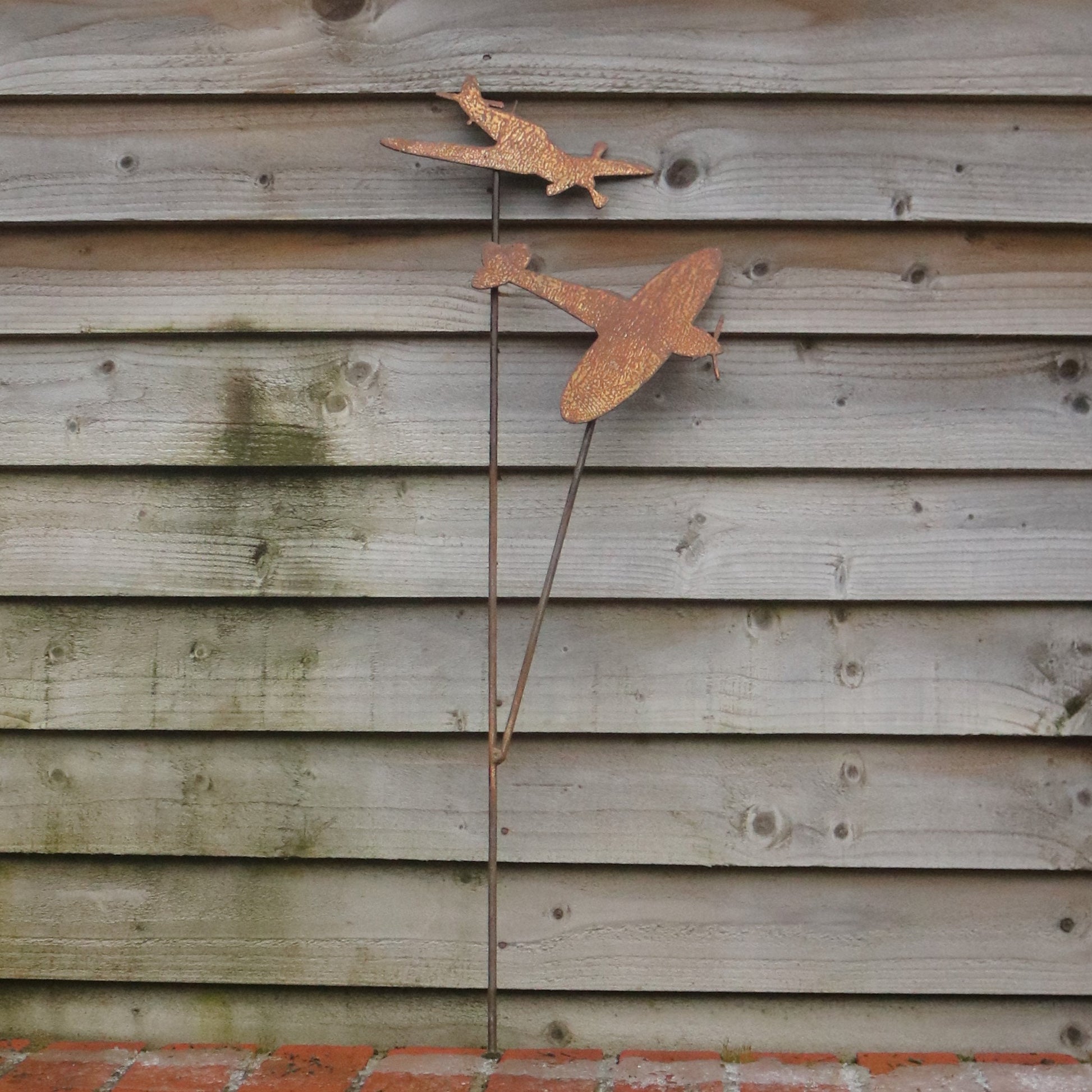 Add a new dimension and all year round interest to your garden with our attractive rusty Spitfire and Hurricane garden decoration. The mild steel is designed to weather naturally out in the elements, the beautiful rusty colours and textures will bring a truly organic feel to your planters, flower beds and borders. Other designs available. Also see our plane wall panels and key holders. This piece is hand finished, so may differ slightly from the photograph.