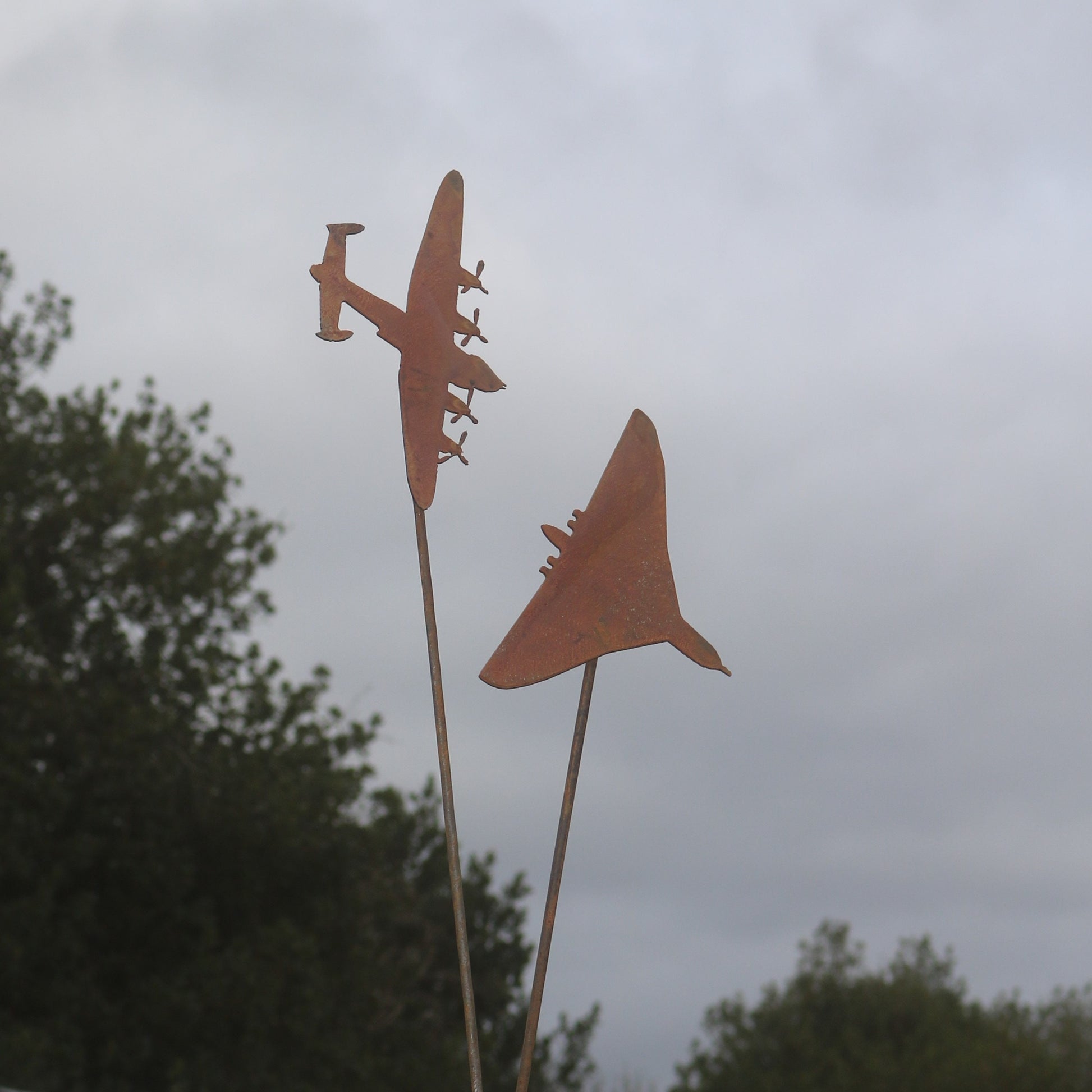 Add a new dimension and all year round interest to your garden with our attractive rusty Lancaster and Vulcan Avro icons garden decoration. The mild steel is designed to weather naturally out in the elements, the beautiful rusty colours and textures will bring a truly organic feel to your planters, flower beds and borders. This piece is hand finished, so may differ slightly from the photograph.