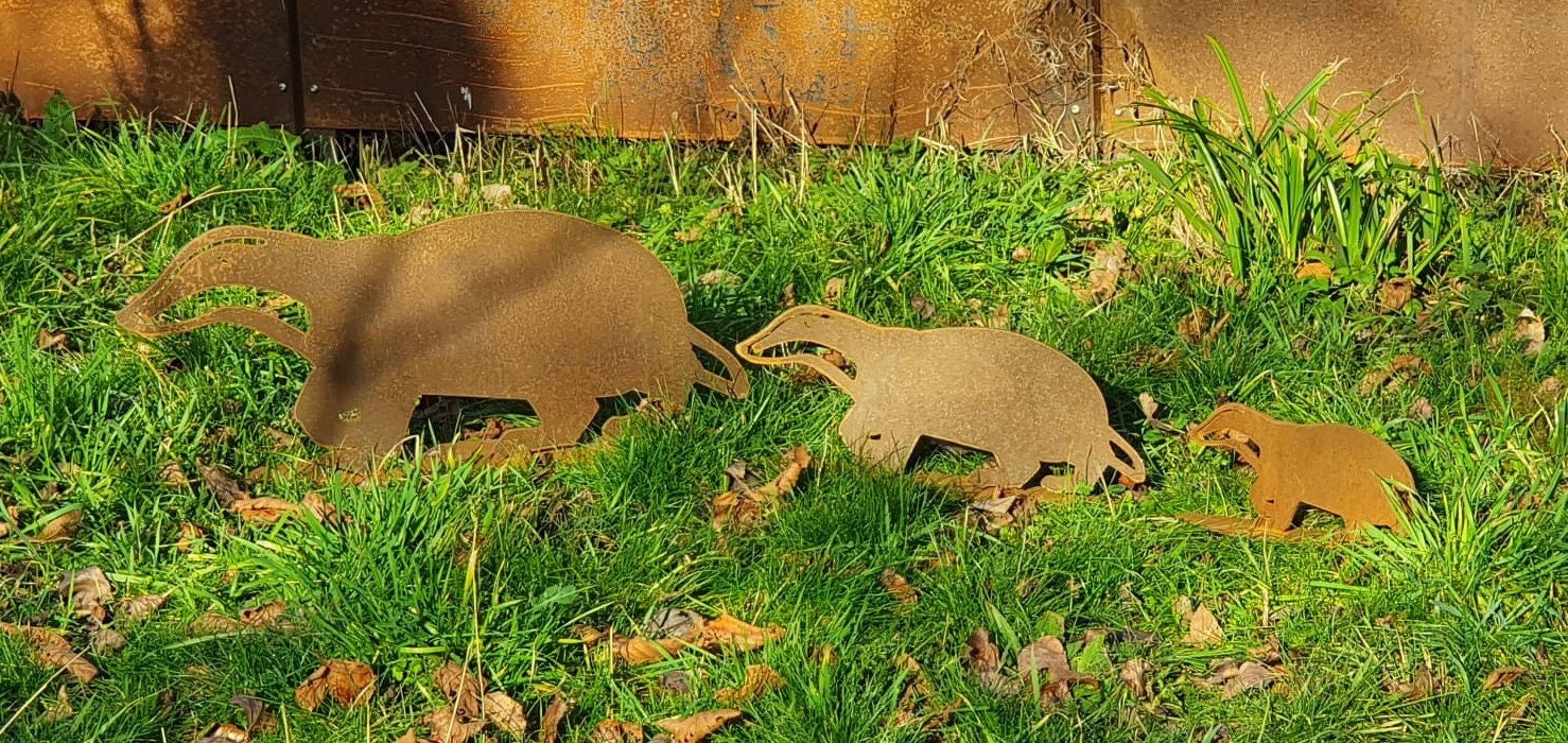 Add a new dimension and all year round interest to your garden with our bespoke rusty badger family garden decoration. The mild steel is designed to weather naturally out in the elements, the beautiful rusty colours and textures will bring a truly organic feel to your planters, flower beds and borders. It is also a fabulous rustic ornament for the home. This item is hand finished, so may differ slightly from the photograph.