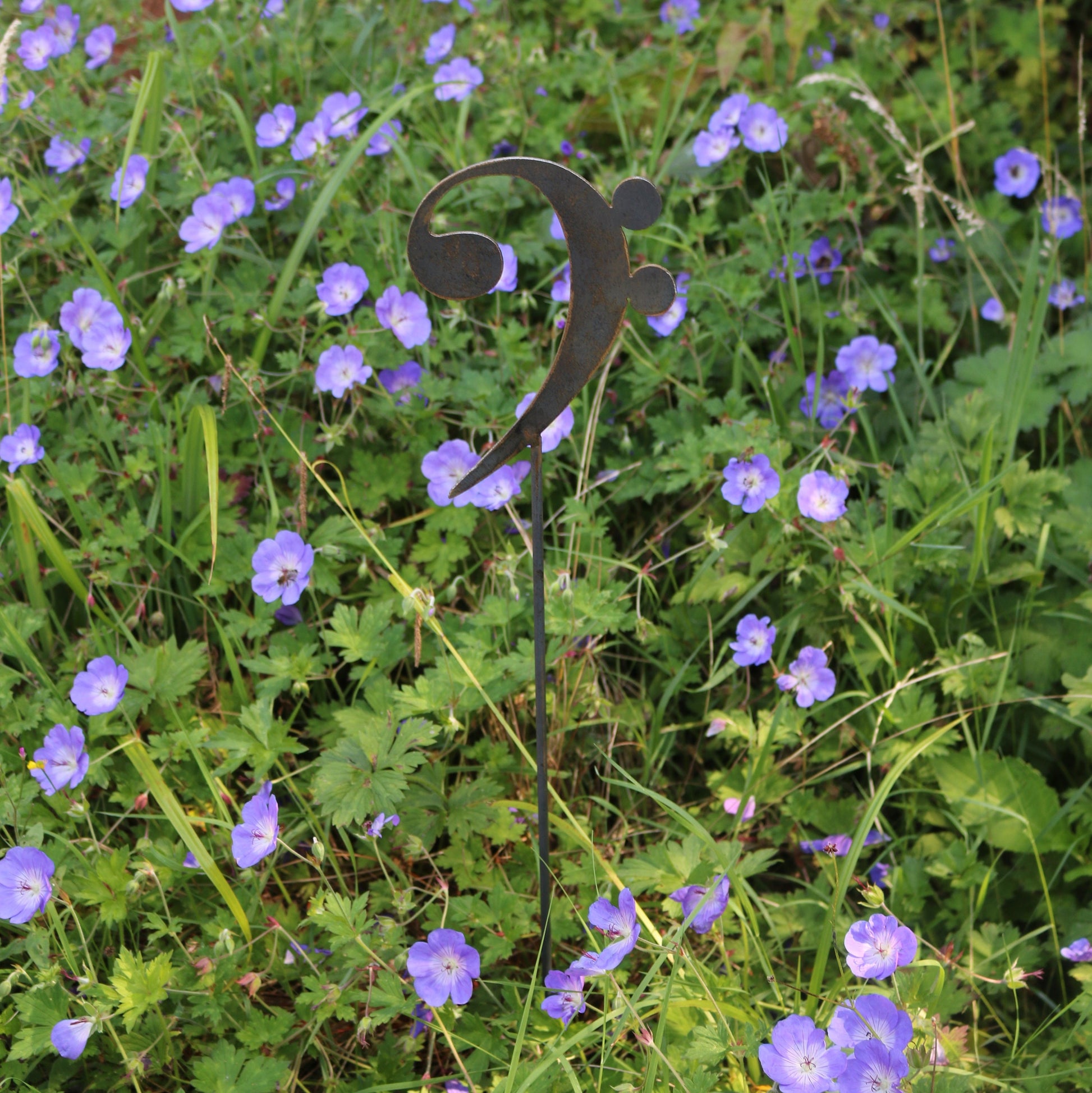 Rusty bass clef garden decoration a perfect musical gift. The mild steel is designed to weather naturally out in the elements, the beautiful rusty colours and textures will bring a truly organic feel to your planters, flower beds and borders. It is also a fabulous rustic ornament for the home. This item is hand finished, so may differ slightly from the photograph.