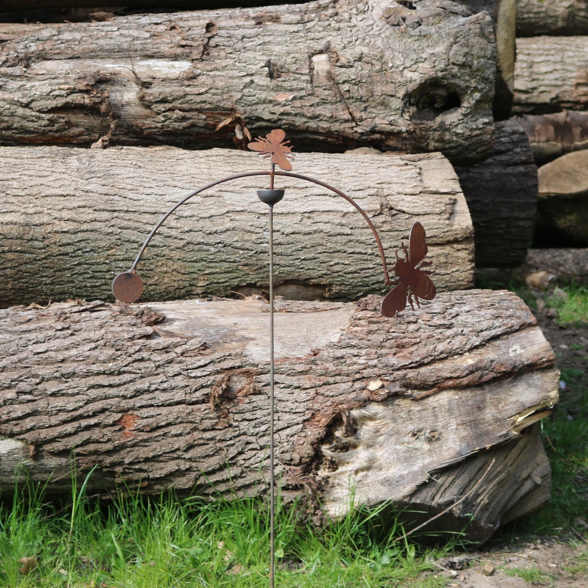 Add a new dimension and all year round interest to your garden with our attractive rusty bee wind rocker garden decoration. The mild steel is designed to weather naturally out in the elements, the beautiful rusty colours and textures will bring a truly organic feel to your planters, flower beds and borders. This piece is hand finished, so may differ slightly from the photograph.