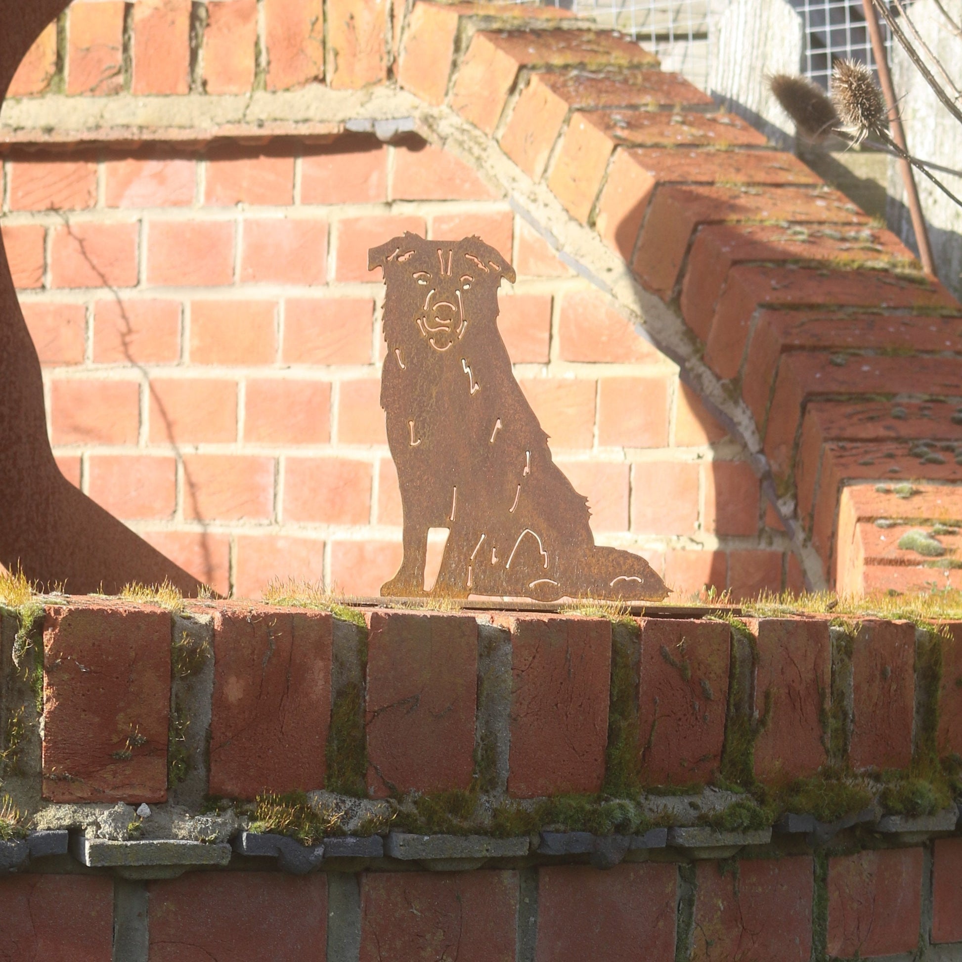 Rusty metal border collie sheepdog gift. This is an original design of a Bobby our family border collie. The mild steel is designed to weather naturally out in the elements, the beautiful rusty colours and textures will bring a truly organic feel to your garden, planters, flower beds and borders. This item is hand finished, so may differ slightly from the photograph.