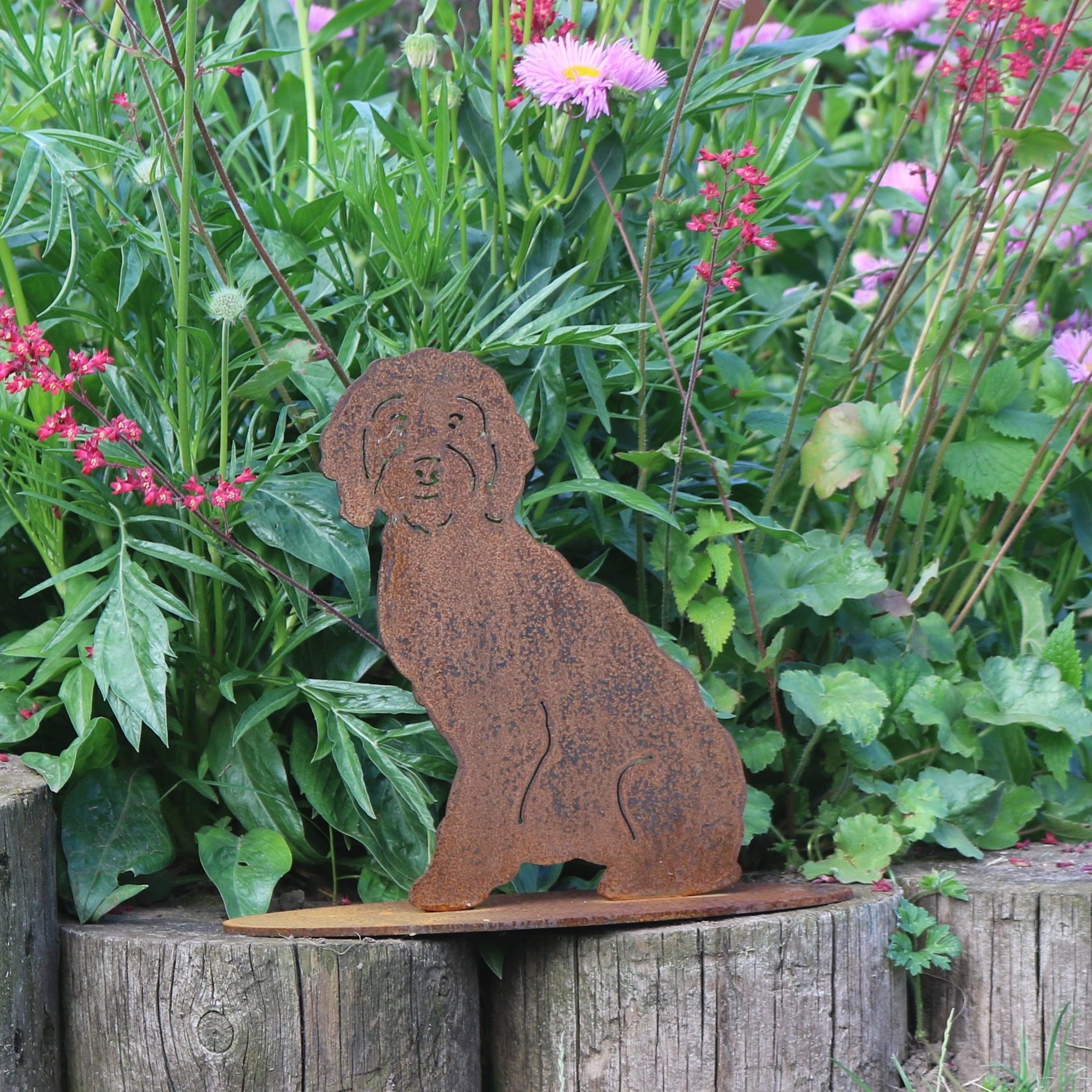 Bespoke Cockapoo statue. This is an original design inspired by Teddy. The mild steel is designed to weather naturally out in the elements, the beautiful rusty colours and textures will bring a truly organic feel to your garden, planters, flower beds and borders. It is also a fabulous rustic ornament for the home. This item is hand finished, so may differ slightly from the photograph.