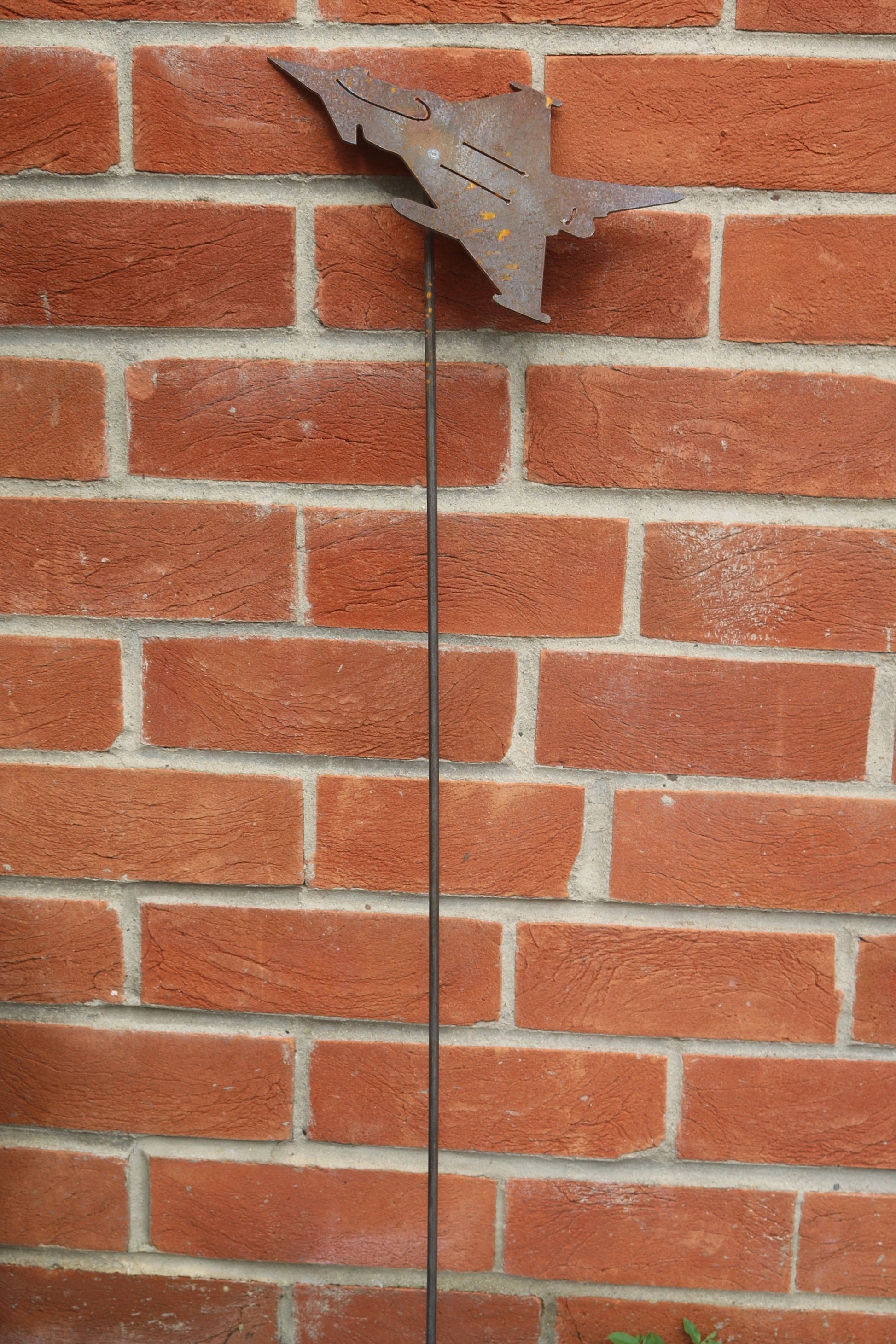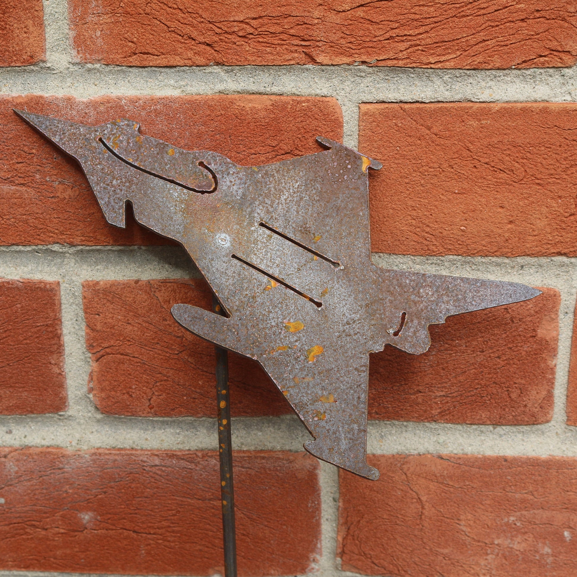 Add a new dimension and interest to your garden with our attractive rusty Eurofighter Typhoon plane garden decoration. The mild steel is designed to weather naturally out in the elements, the beautiful rusty colours and textures will bring a truly organic feel to your planters, flower beds and borders. This item is hand finished, so may differ slightly from the photograph.
