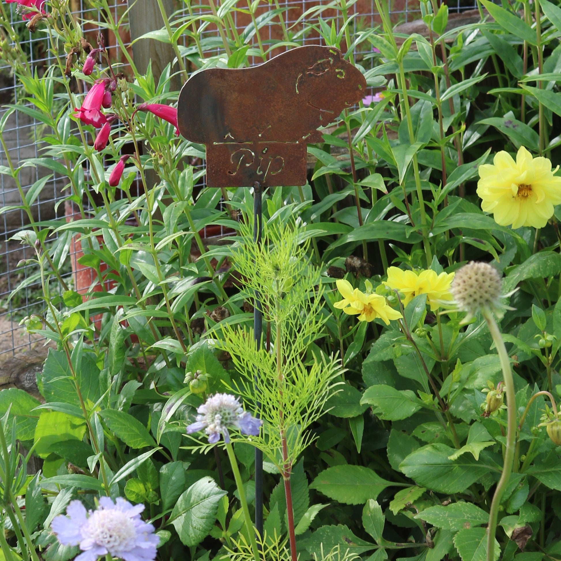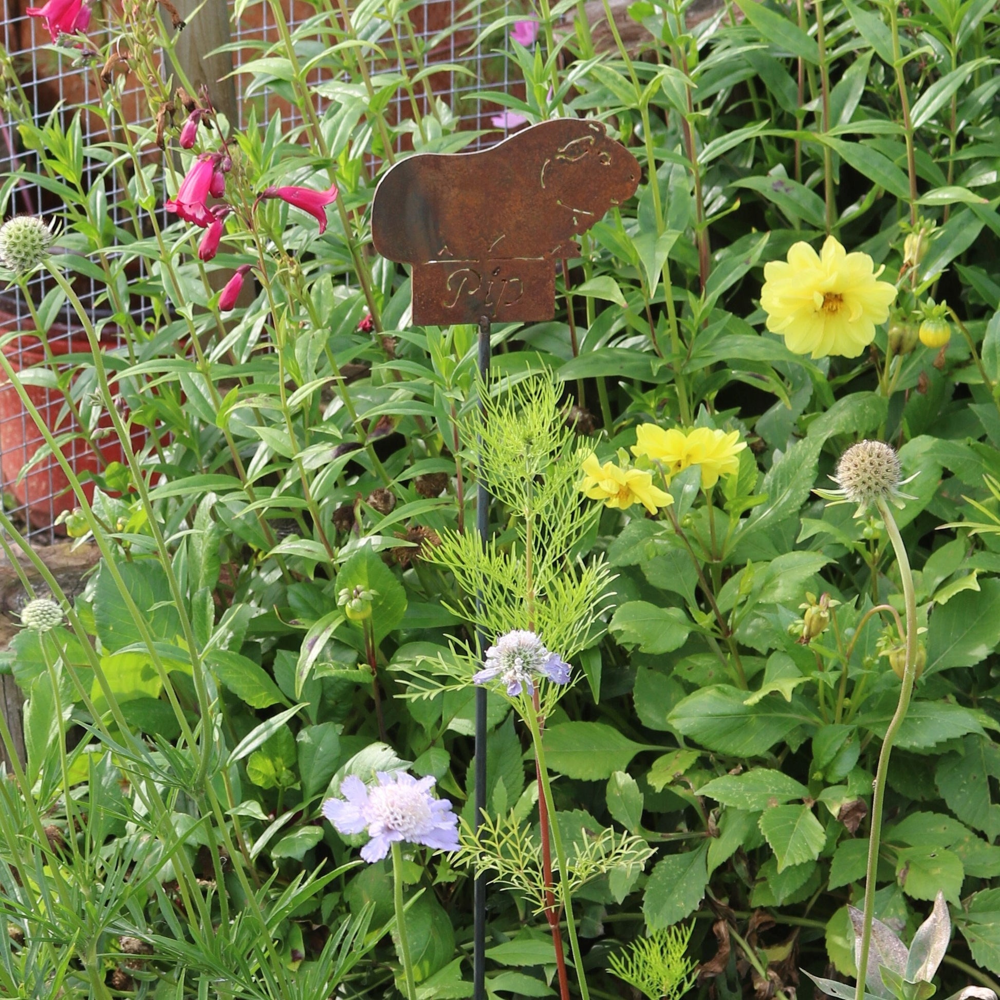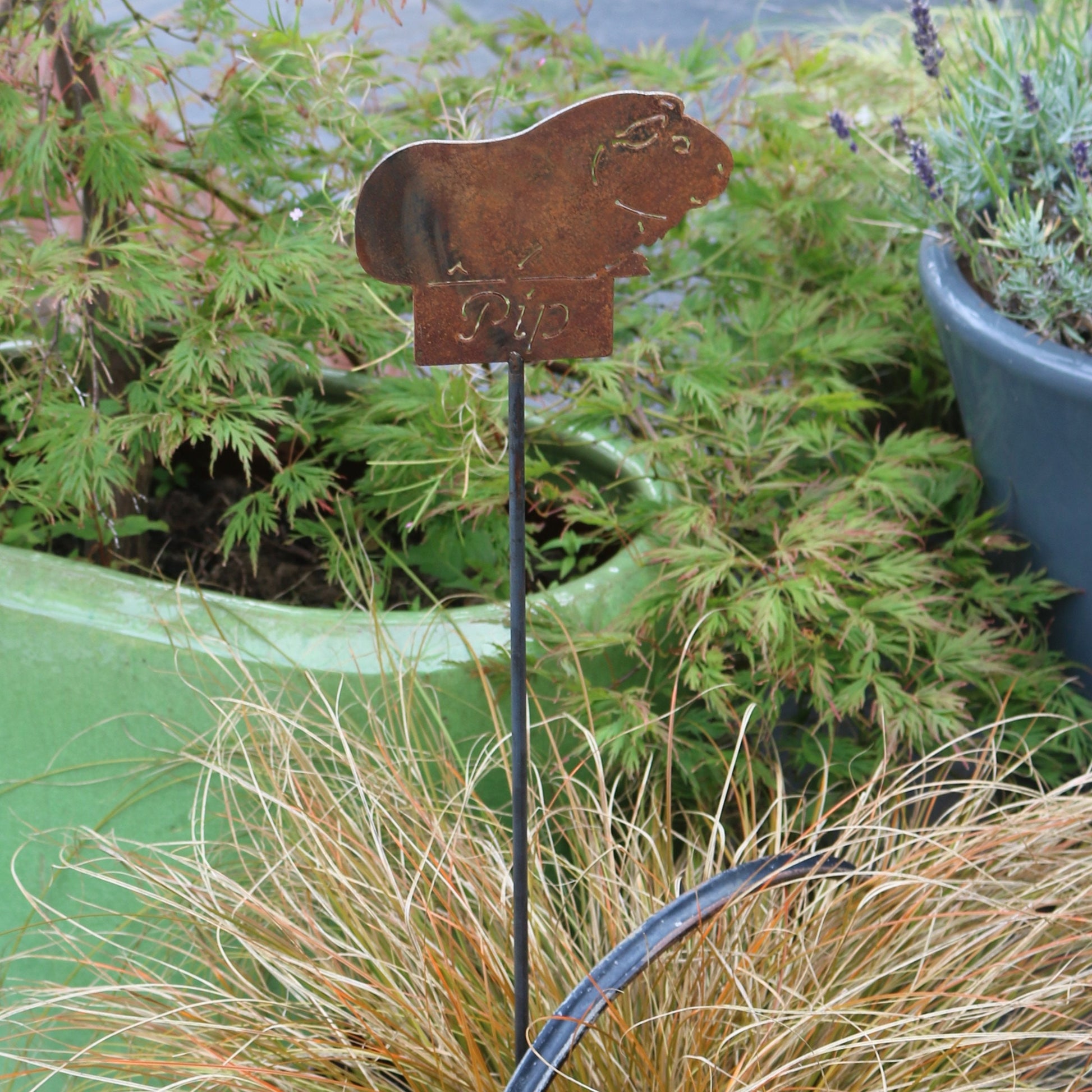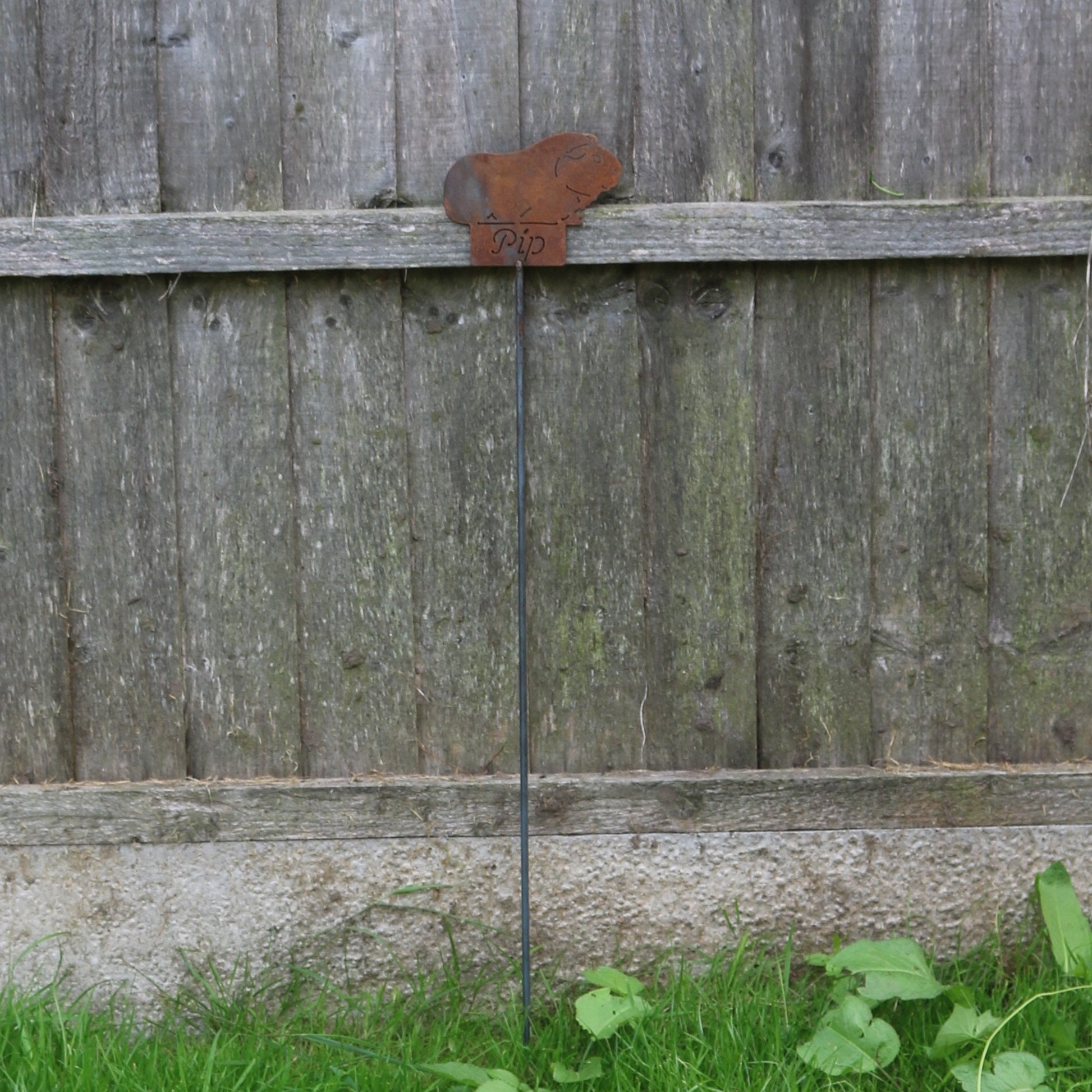 Rusty metal guinea outdoor and garden decorative sign, name plate. Original bespoke guinea pig garden and outdoor gift. Can be personalised with up to 5 letters. The mild steel is designed to weather naturally out in the elements, the beautiful rusty colours and textures will bring a truly organic feel to your garden, planters, flower beds and borders. This item is hand finished, so may differ slightly from the photograph.