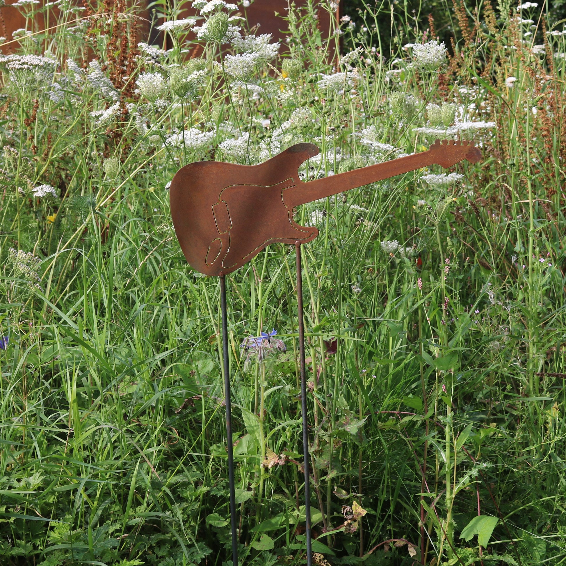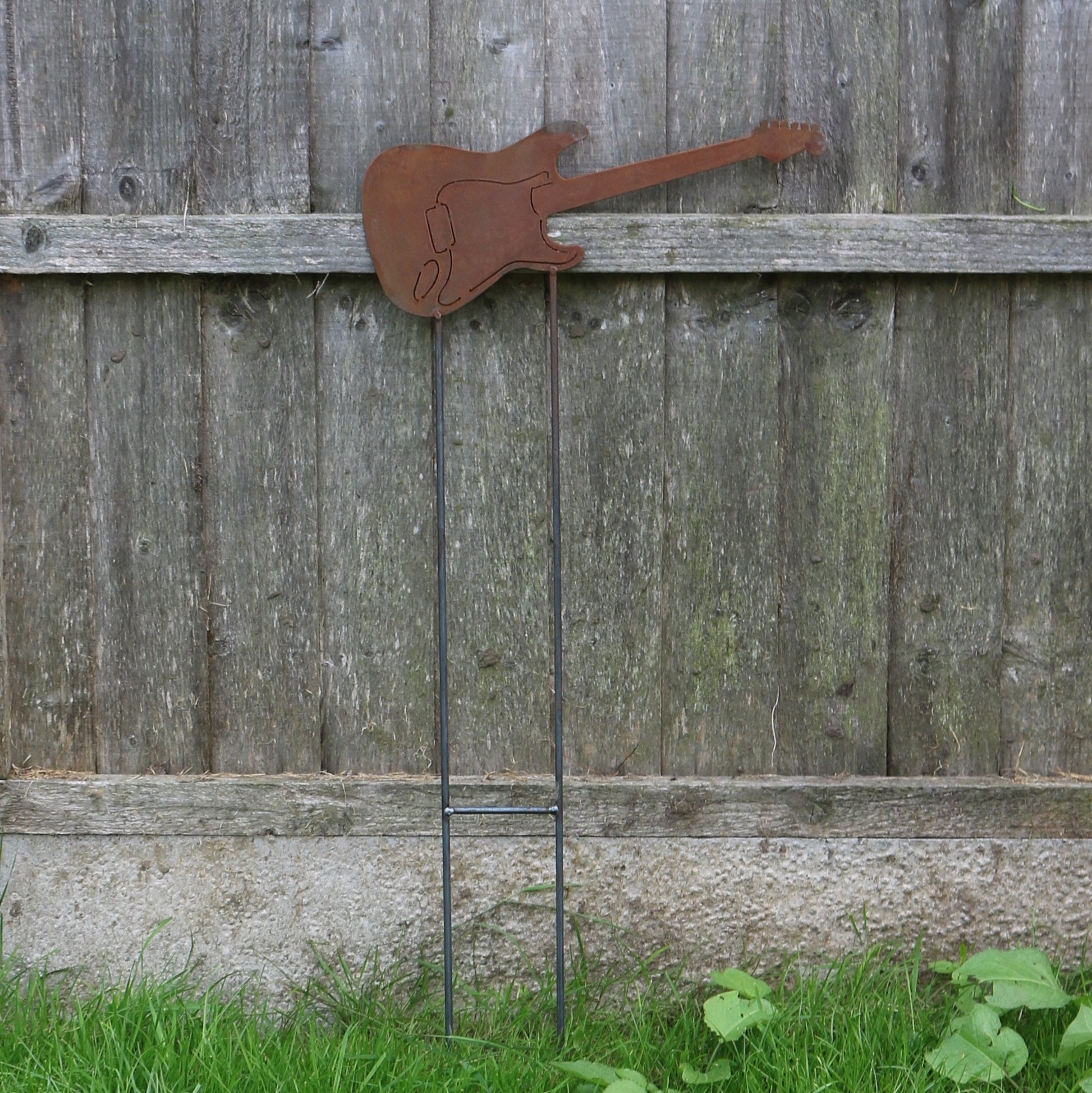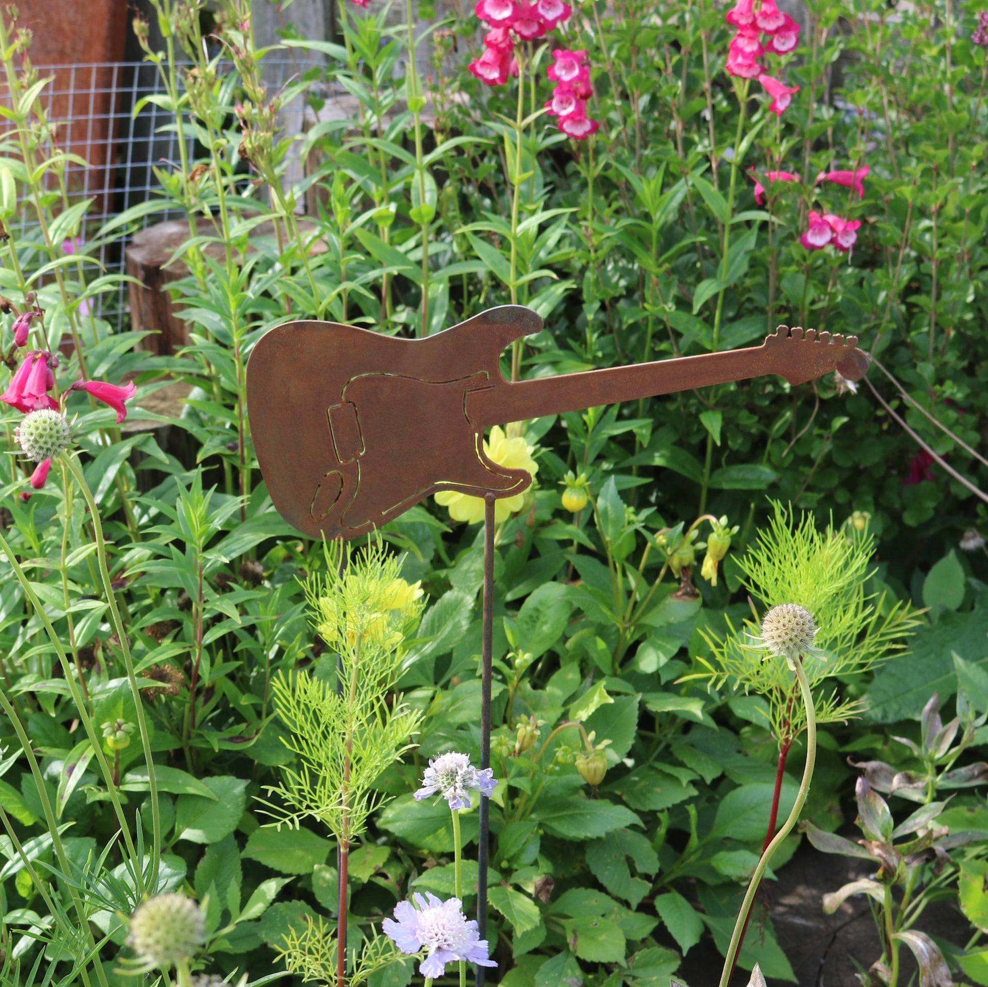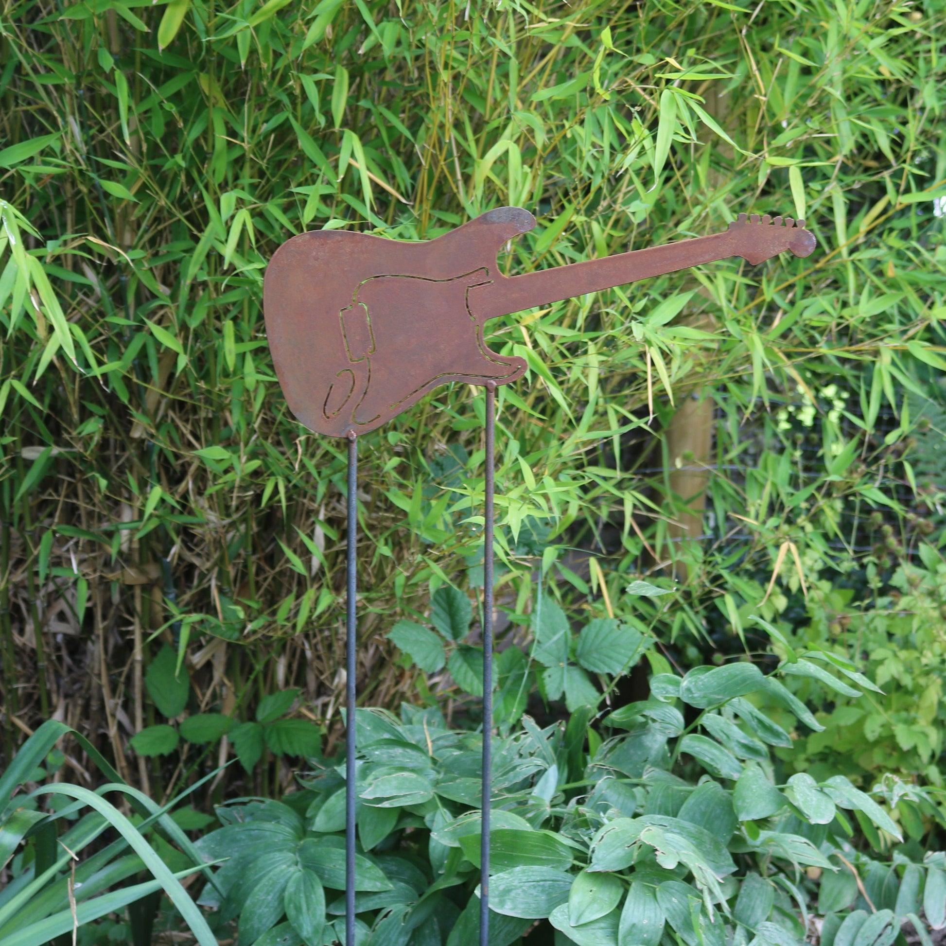 Our original custom design electric guitar garden decoration. Designed and manufactured by us in the UK. Cut from mild steel in a rusty finish. The mild steel is designed to weather naturally out in the elements, the beautiful rusty colours and textures will bring a truly organic feel to your garden, planters, flower beds and borders. This item is hand finished, so may differ slightly from the photograph.