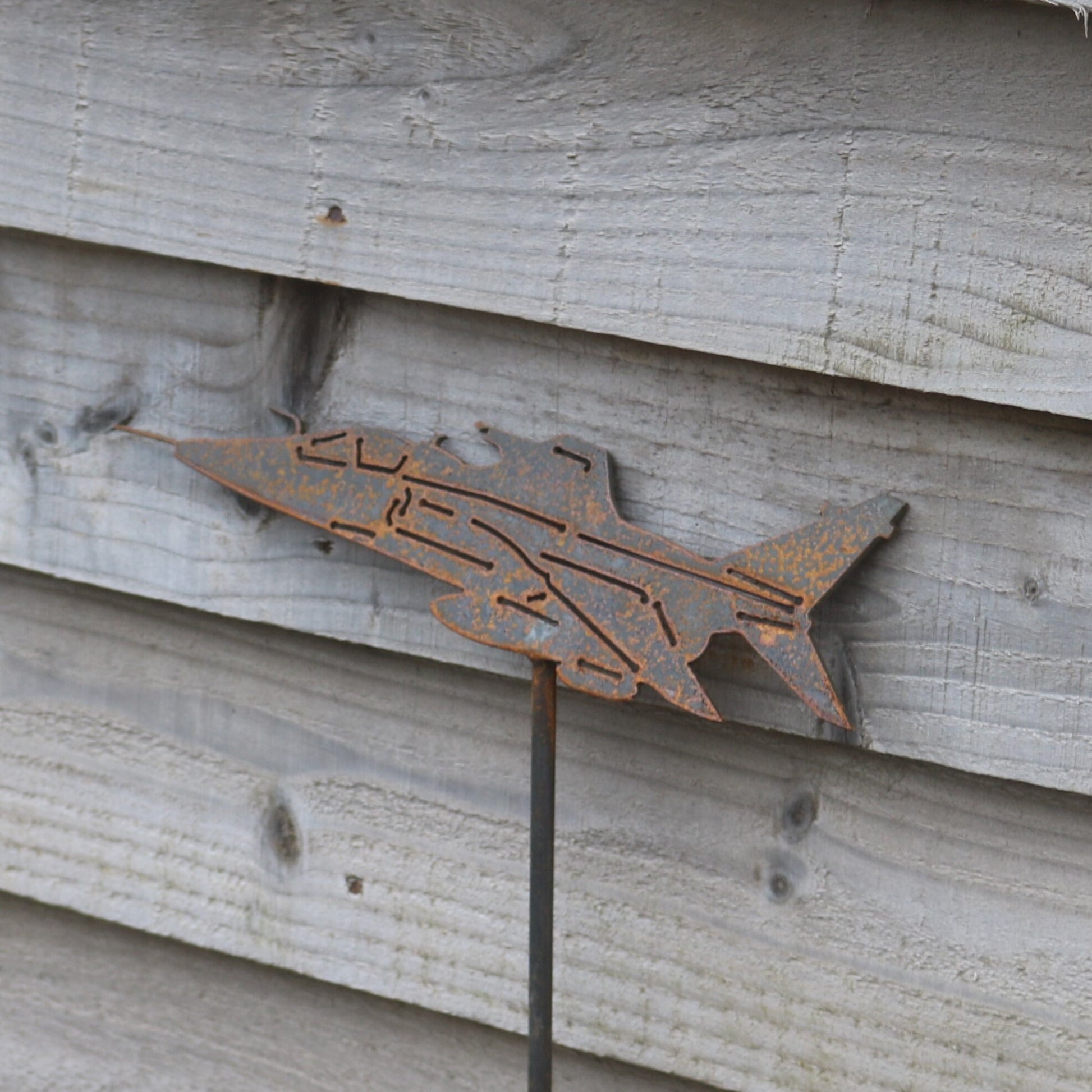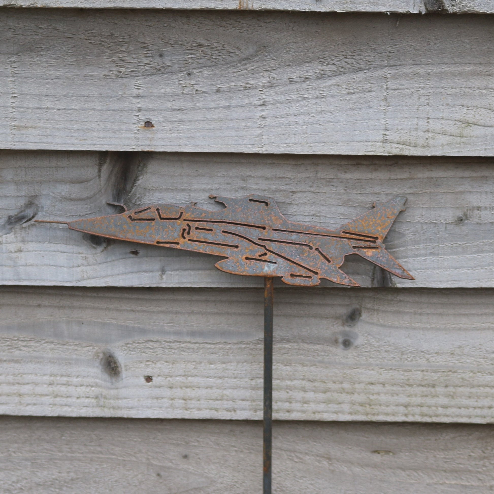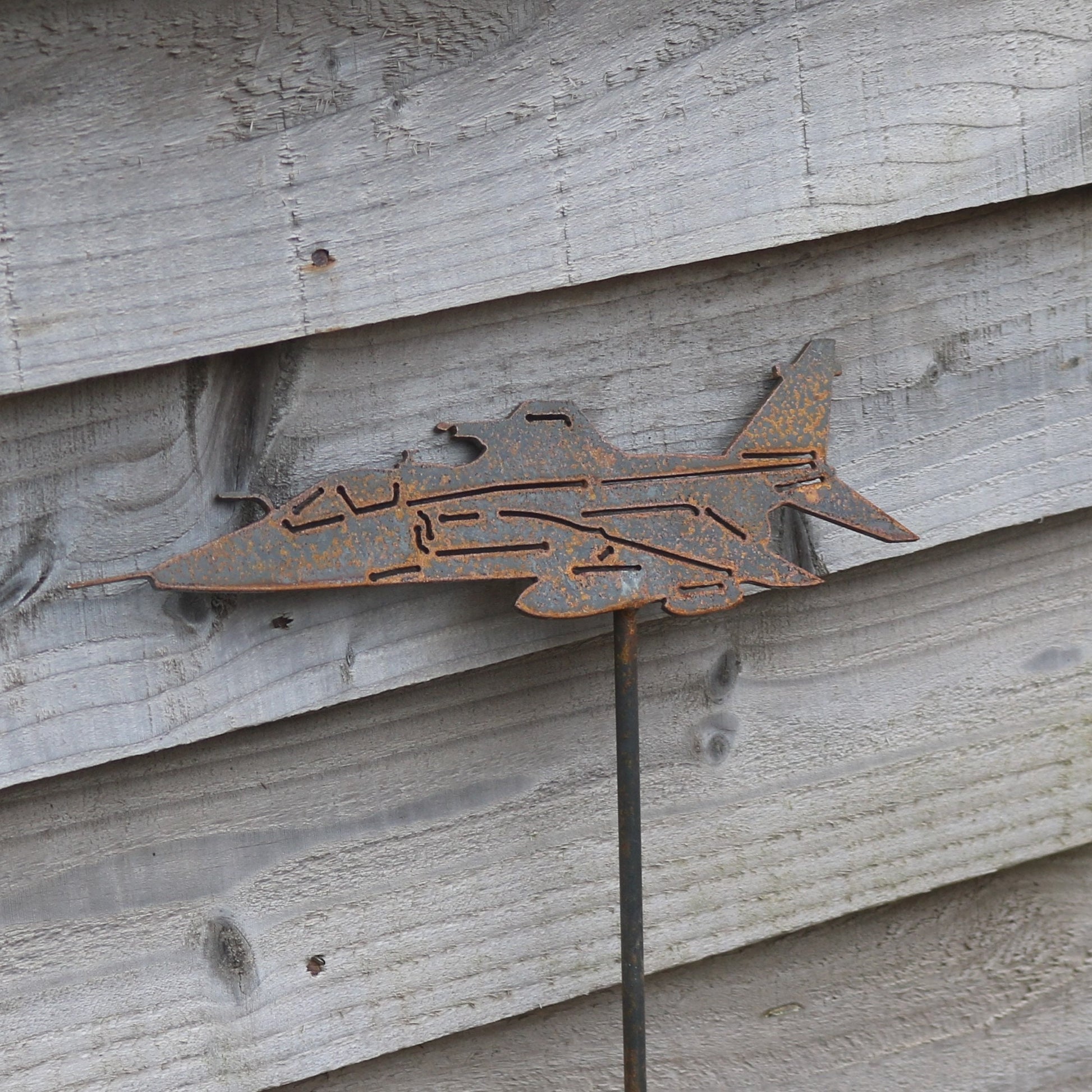Add a new dimension and interest to your garden with our attractive rusty Jaguar aircraft garden decoration. The mild steel is designed to weather naturally out in the elements, the beautiful rusty colours and textures will bring a truly organic feel to your planters, flower beds and borders. This item is hand finished, so may differ slightly from the photograph