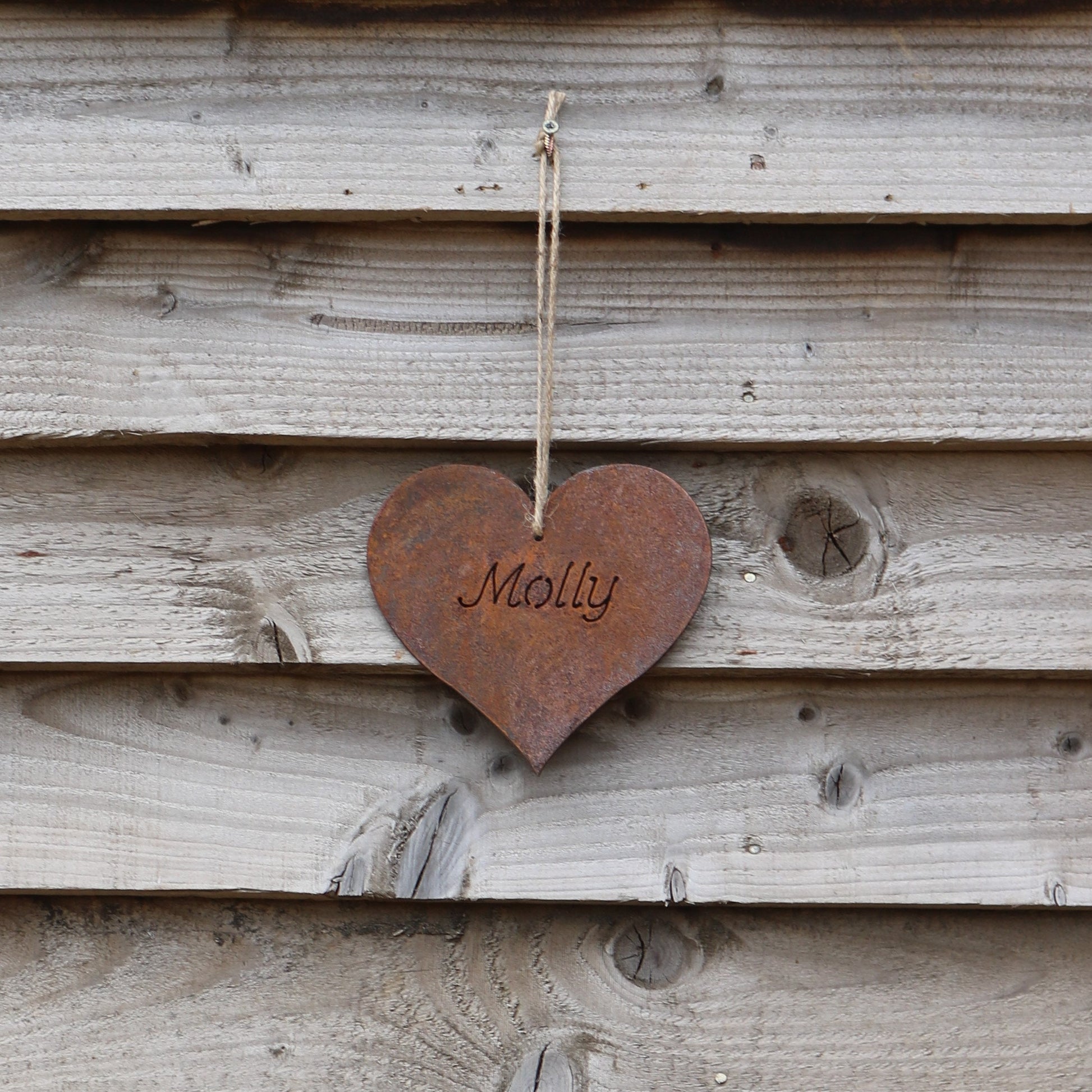 A unique personalised rusty metal heart keepsake. The mild steel is designed to weather naturally out in the elements, the beautiful rusty colours and textures will bring a truly organic feel to your garden. It is also a fabulous rustic ornament for the home. This item is hand finished, so may differ slightly from the photograph.