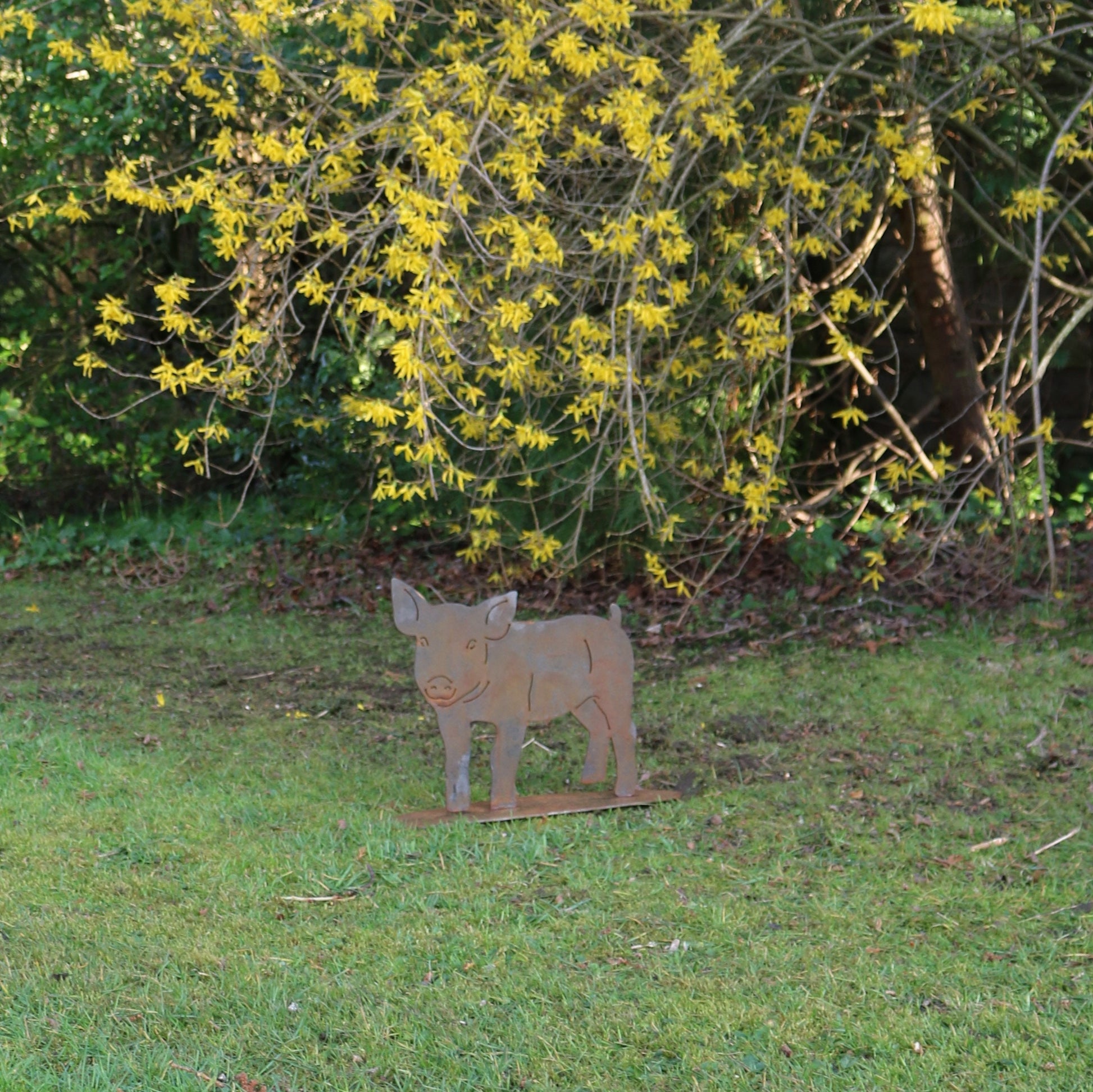 Add a new dimension and all year round interest to your garden with our attractive rusty metal pig garden decoration. The mild steel is designed to weather naturally out in the elements, the beautiful rusty colours and textures will bring a truly organic feel to your planters, flower beds and borders. It is also a fabulous rustic ornament for the home. This item is hand finished, so may differ slightly from the photograph.