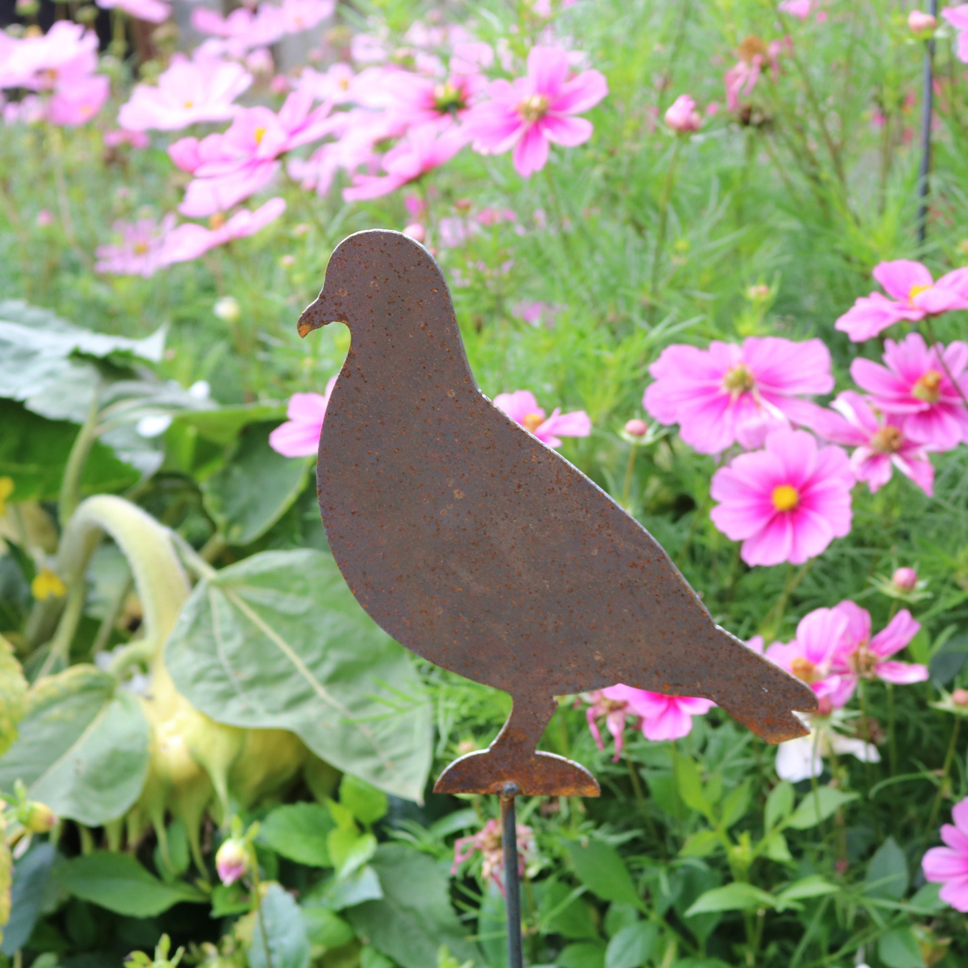 Add a new dimension and interest to your garden with our attractive rusty pigeon garden decoration. The mild steel is designed to weather naturally out in the elements, the beautiful rusty colours and textures will bring a truly organic feel to your planters, flower beds and borders. This item is hand finished and may differ slightly from the photograph.