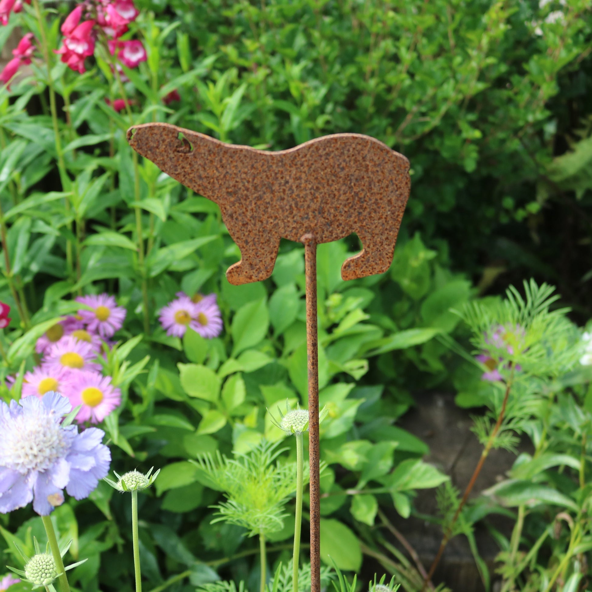 Add a new dimension and all year round interest to your garden with our attractive rusty steel polar bear garden decoration. The mild steel is designed to weather naturally out in the elements, the beautiful rusty colours and textures will bring a truly organic feel to your planters, flower beds and borders. This item is hand finished so may vary slightly from the photograph.