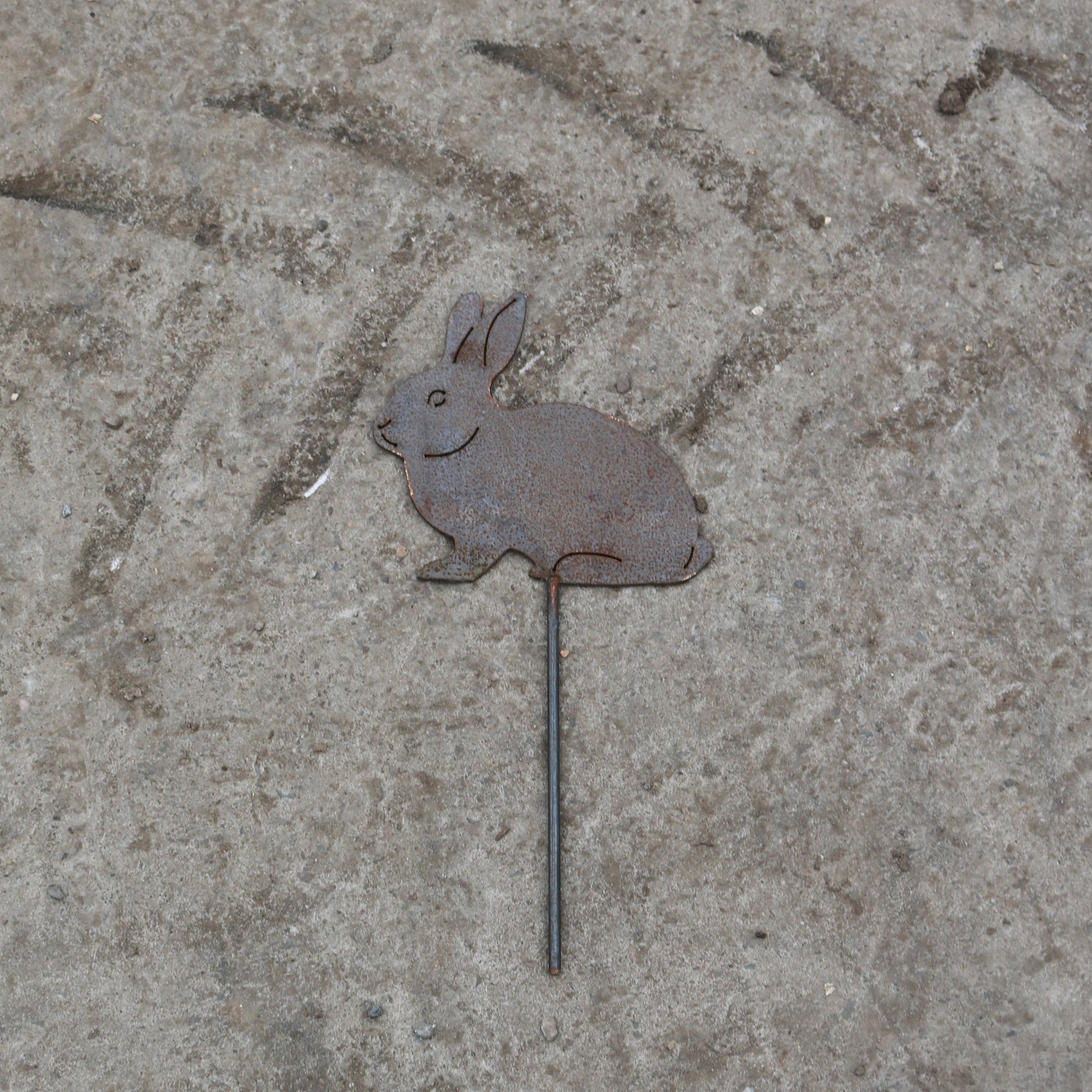 Rusty metal rabbit plant pot decoration, garden decoration or pet memorial. The mild steel is designed to weather naturally out in the elements, the beautiful rusty colours and textures will bring a truly organic feel to your planters, flower beds and borders. It is also a fabulous rustic ornament for the home. This item is hand finished, so may differ slightly from the photograph.