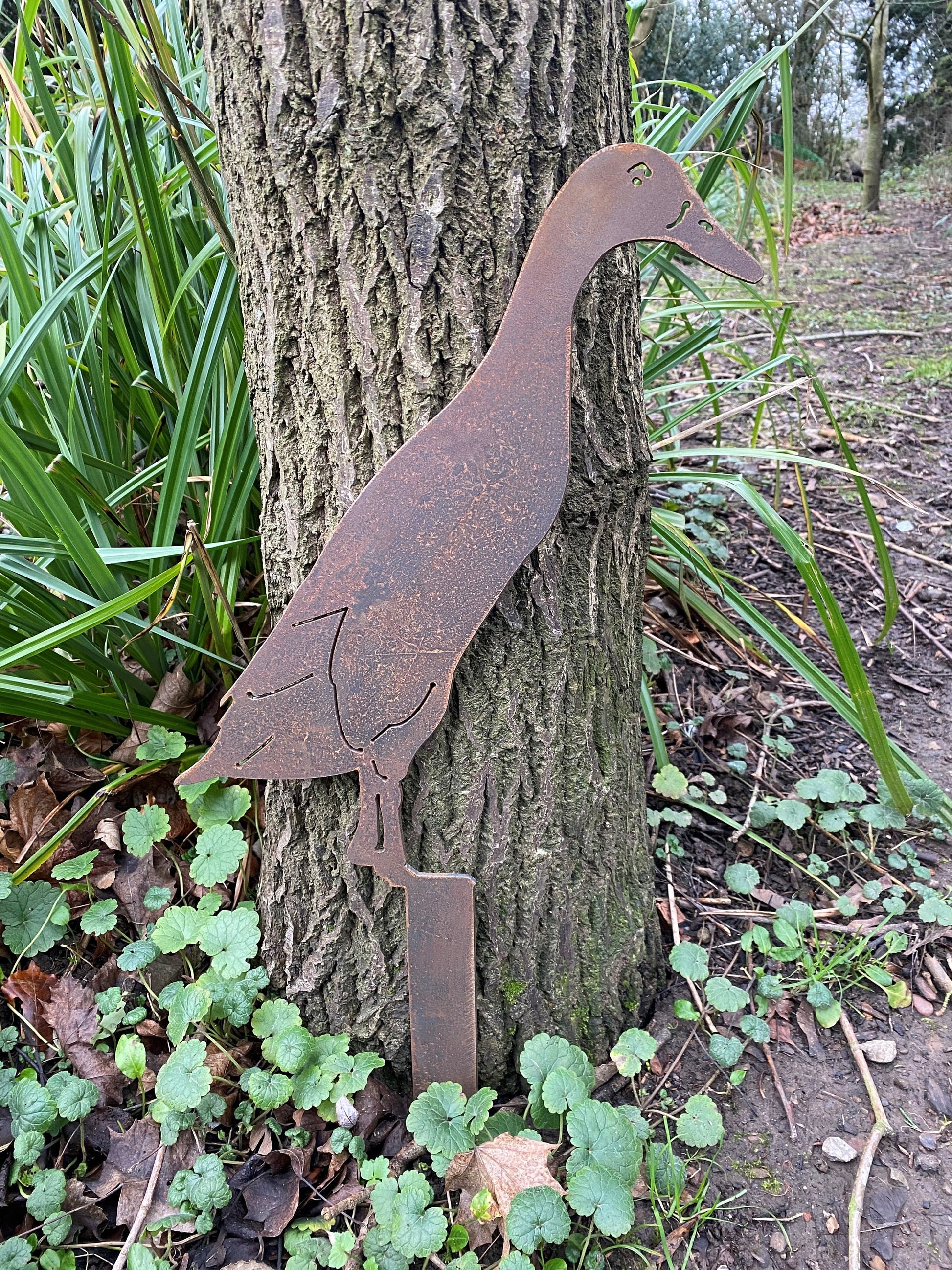 Add a new dimension and all year round interest to your garden with our attractive rusty runner duck garden decoration. The mild steel is designed to weather naturally out in the elements, the beautiful rusty colours and textures will bring a truly organic feel to your planters, flower beds and borders. This item is hand finished, so may differ slightly from the photograph. This item is bespoke and can be made in any size, please contact us for a quote.