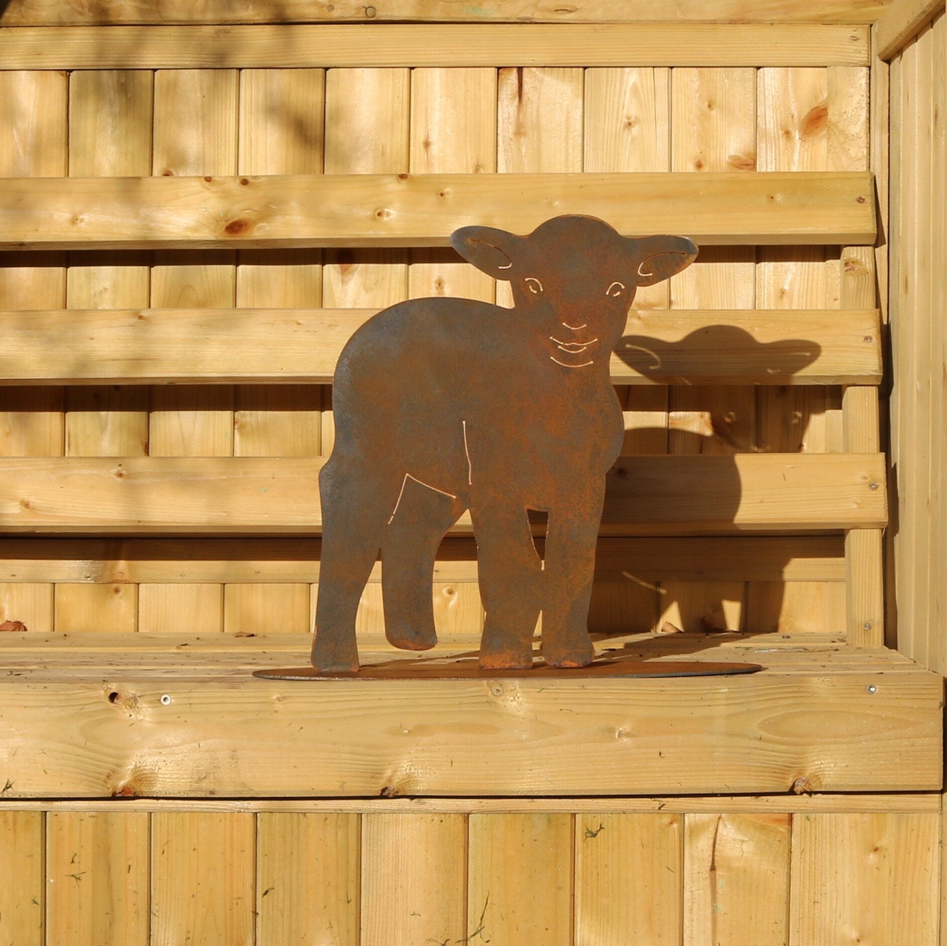Add a new dimension and all year round interest to your garden with our attractive rusty Spring lamb garden decoration. The mild steel is designed to weather naturally out in the elements, the beautiful rusty colours and textures will bring a truly organic feel to your planters, flower beds and borders. It is also a fabulous rustic ornament for the home. This item is hand finished, so may differ slightly from the photograph.