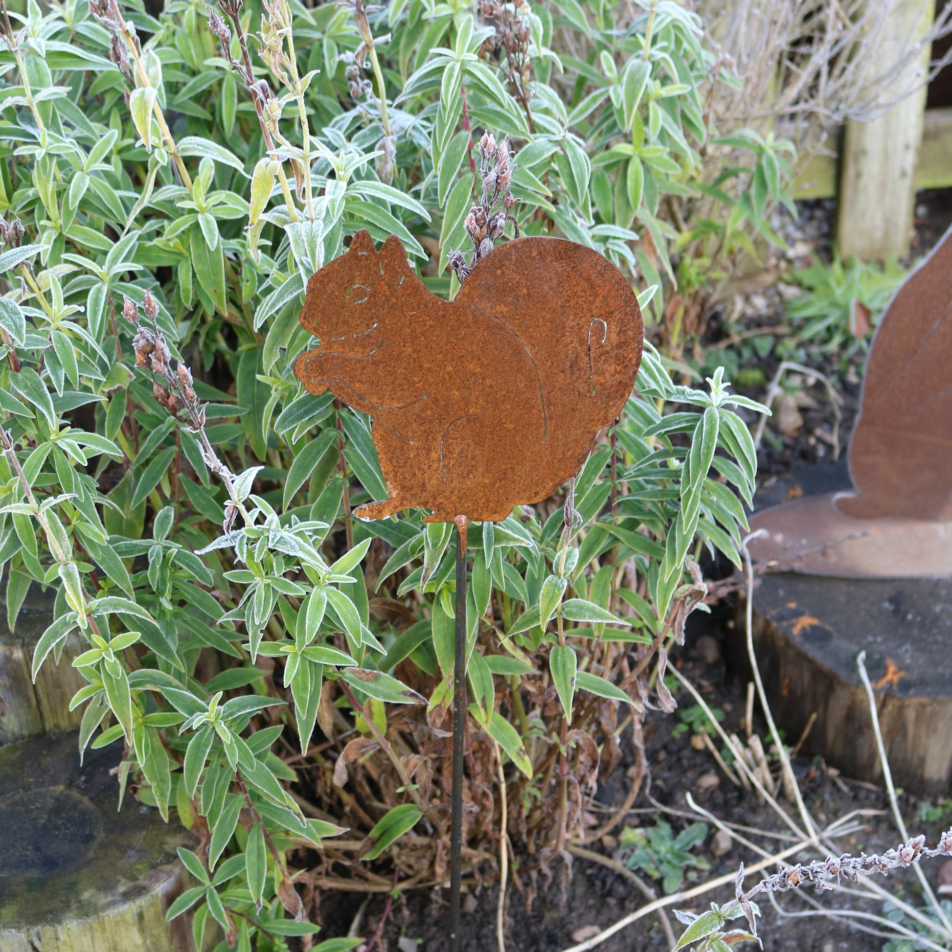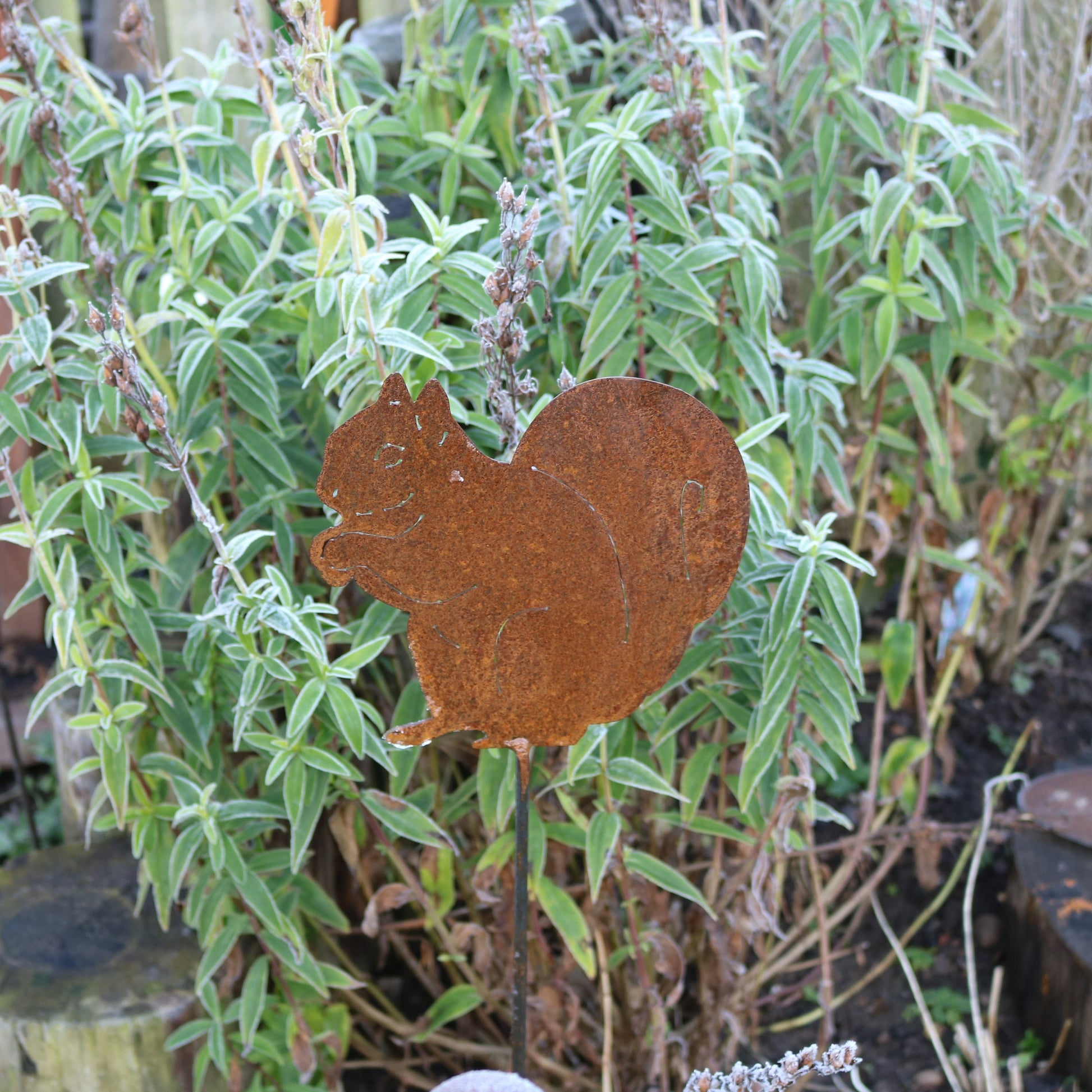 Add a new dimension and all year round interest to your garden with our attractive rusty metal squirrel garden decoration. The mild steel is designed to weather naturally out in the elements, the beautiful rusty colours and textures will bring a truly organic feel to your planters, flower beds and borders. This item is hand finished so may vary slightly from he photograph.