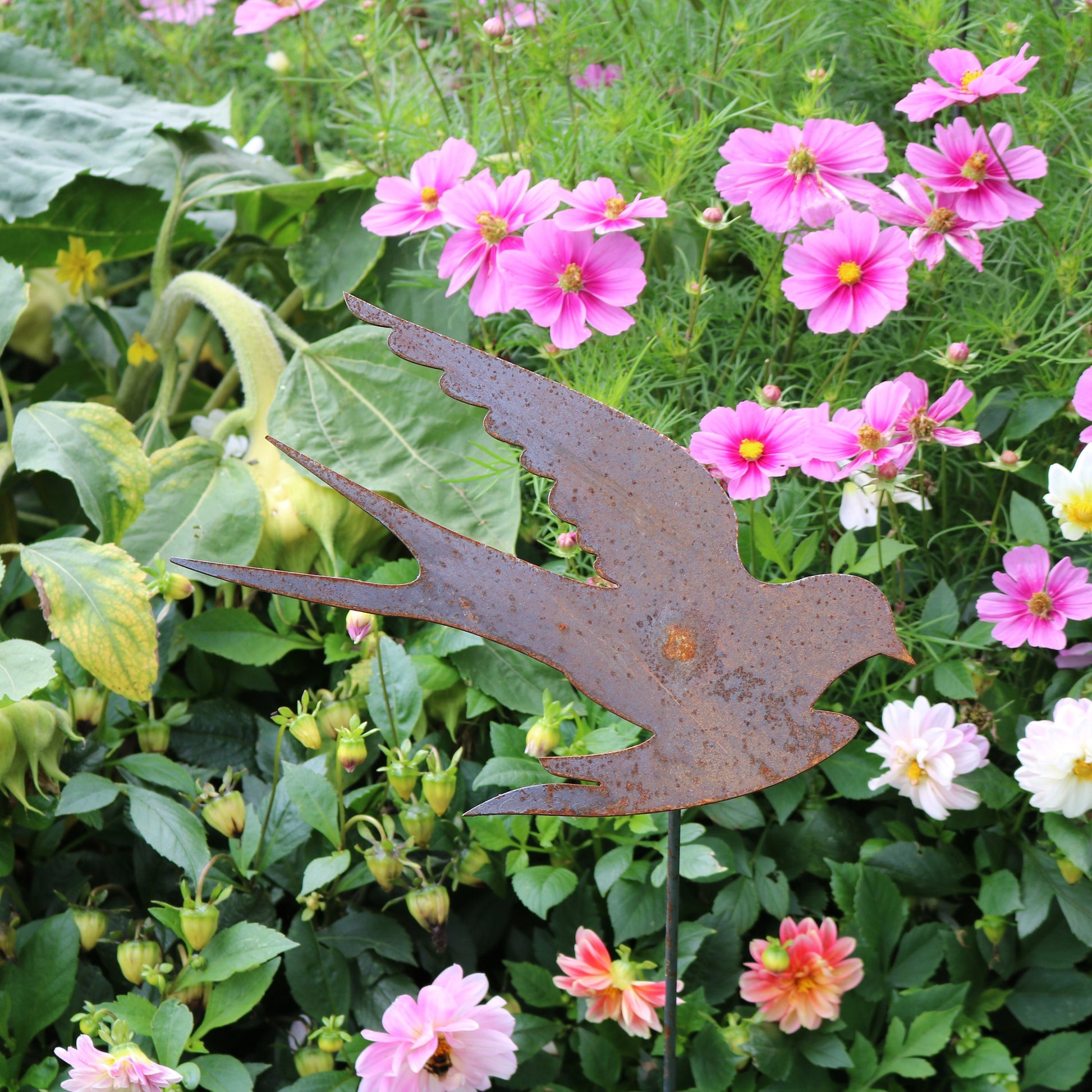 Add a new dimension and interest to your garden with our attractive rusty steel swallow garden decoration. The mild steel is designed to weather naturally out in the elements, the beautiful rusty colours and textures will bring a truly organic feel to your planters, flower beds and borders. This swallow is hand finished, so may differ slightly from the photograph.