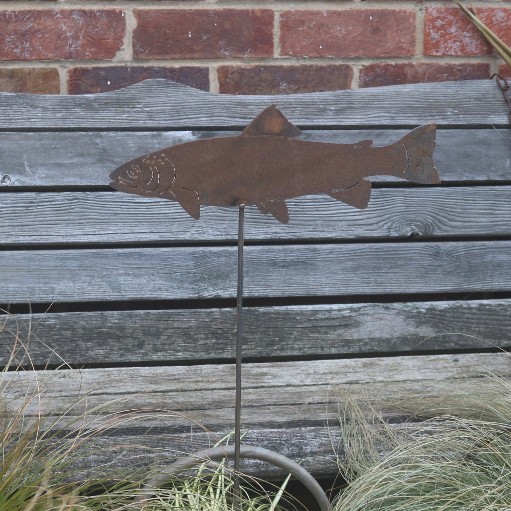 Add a new dimension and all year round interest to your garden or pond with our attractive rusty steel trout garden decoration. The mild steel is designed to weather naturally out in the elements, the beautiful rusty colours and textures will bring a truly organic feel to your planters, flower beds and borders. This item is hand finished so may vary slightly from the photograph.